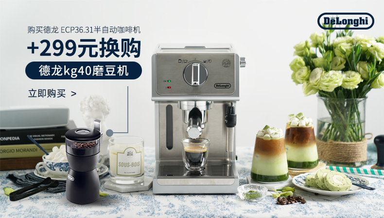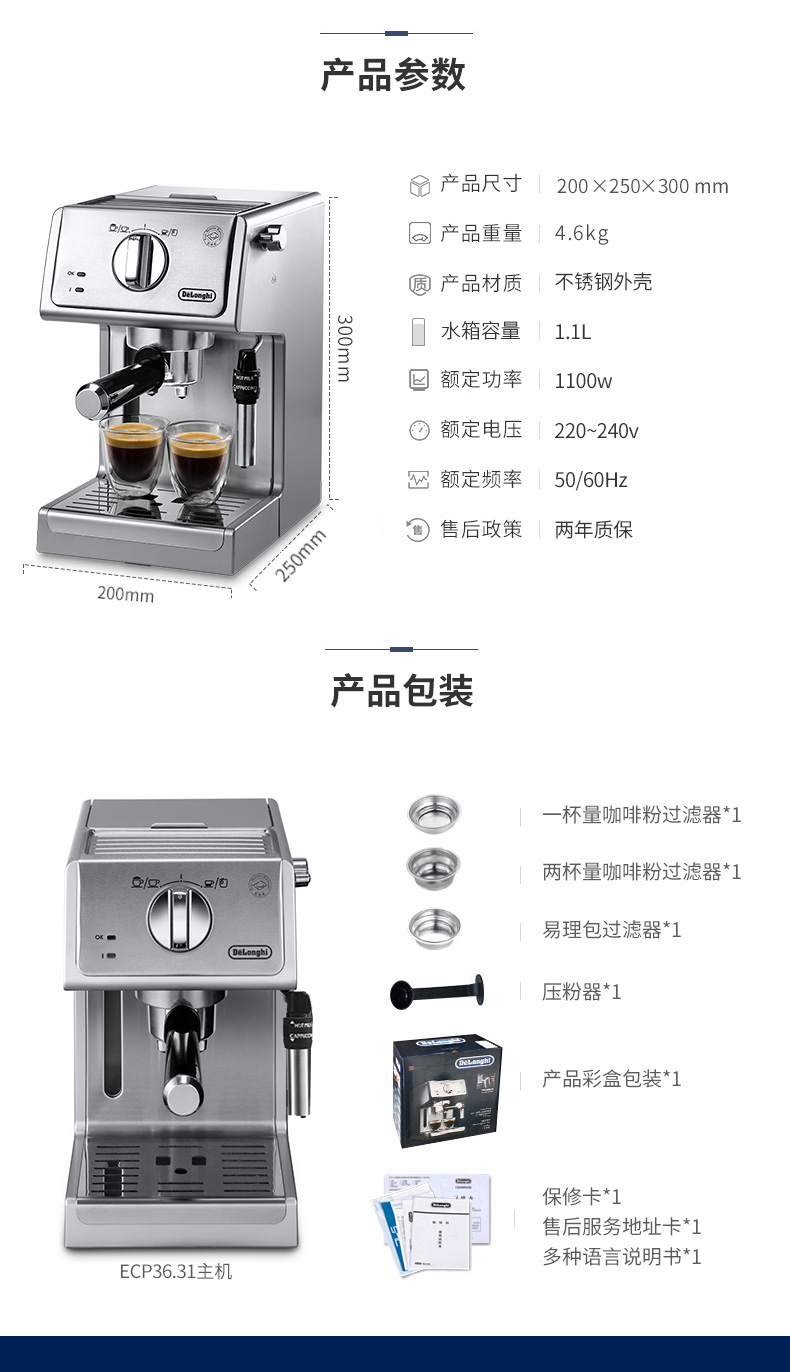Delonghi/德龙 ECP36.31泵压意式家用咖啡机半自动奶泡小型不锈钢