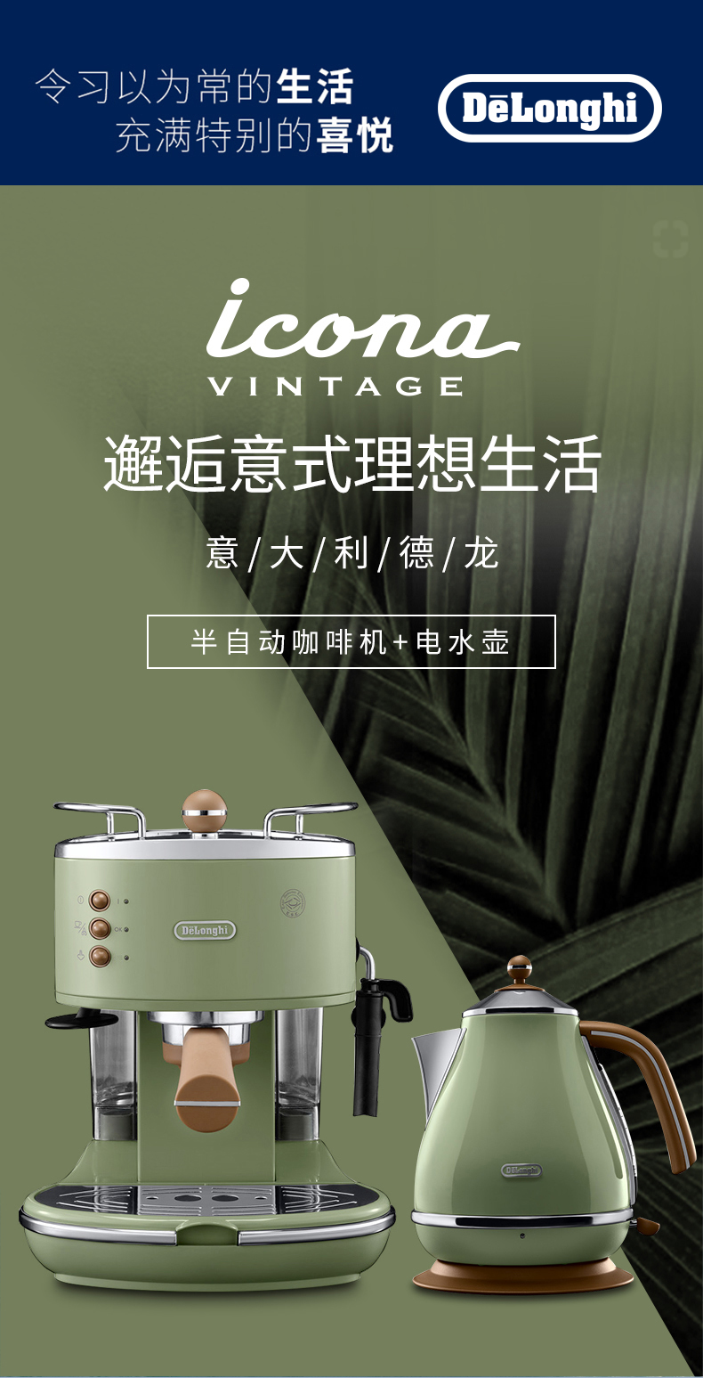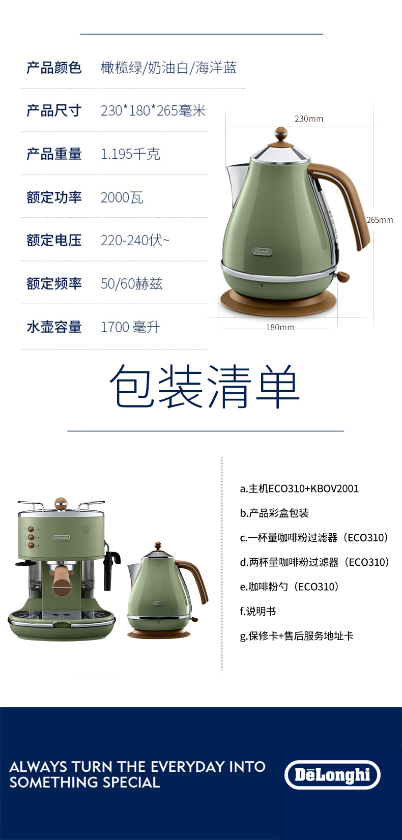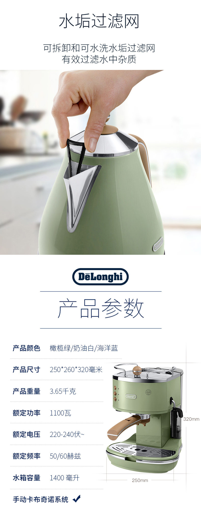 Delonghi/德龙意式家用ECO310泵压半自动咖啡机+不锈钢电热烧水壶